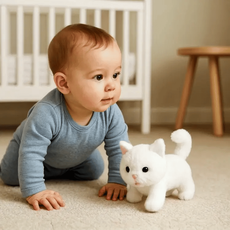 Bu oyuncak, gelişmiş motor teknolojisiyle gerçek kedilerin hareketlerini taklit eden elektrikli yürüme özelliğine sahiptir. Çocuklar, yanlarında yürüyen sevimli bir kedi yavrusu hissini yaşarken hem eğlenir hem de gözlem becerileri ile hayal güçleri gelişir.